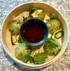 Straw mushrooms, water chestnuts, spring onions, green chilli’s, sake and soy in a light vegetable wrapper, lightly steamed, the dumplings had a real kick to them, fragrant and spicy.